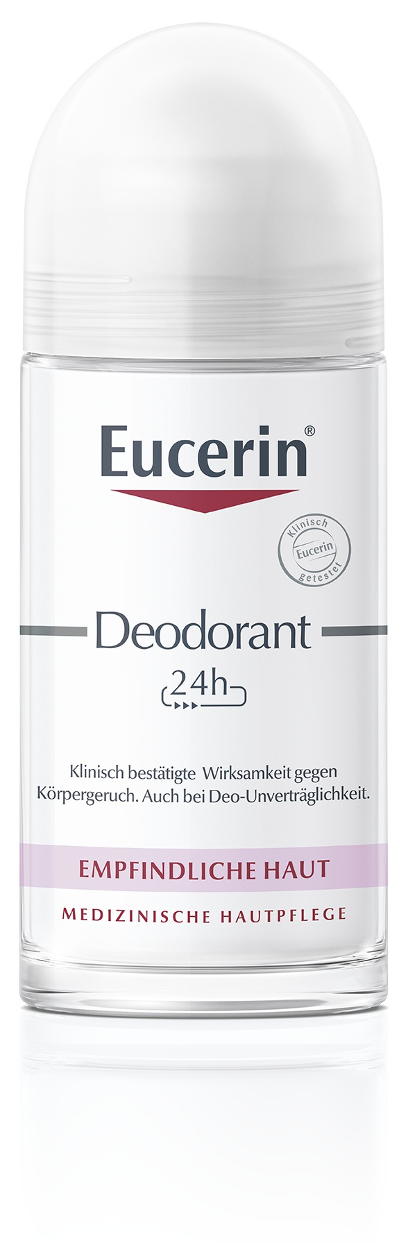 Eucerin 24 h Deodorant Empfindliche Haut Roll-on enthält keine potenziellen Reizstoffe wie Parfüm, Alkohol, Farb- oder Konservierungsstoffe. Da es den natürlichen pH-Wert wiederherstellt, ist es zudem auch hautfreundlich. Die Rezeptur wurde an Personen mit sehr empfindlicher Haut, Neurodermitis, Deo-Unverträglichkeit und Achselekzem getestet.
