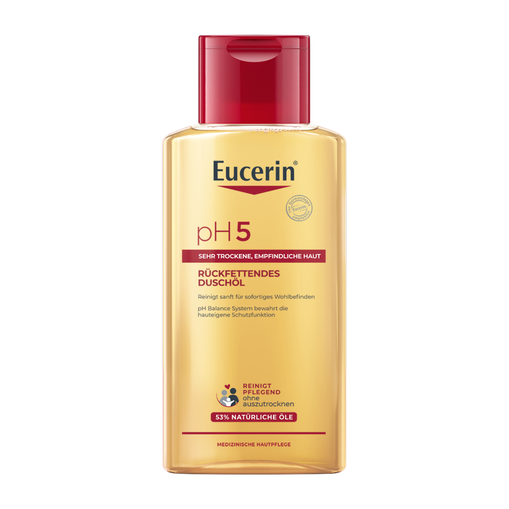 Eucerin pH5 Duschöl wurde speziell mit extra milden Tensiden zur Reinigung trockener, empfindlicher Haut entwickelt. Die Formel mit dem natürlichen pH-Wert und Dexpanthenol bewahrt nachweislich die natürliche Schutzfunktion und Widerstandskraft der Haut und reinigt sanft mit einem hohen Anteil natürlicher Pflegeöle.