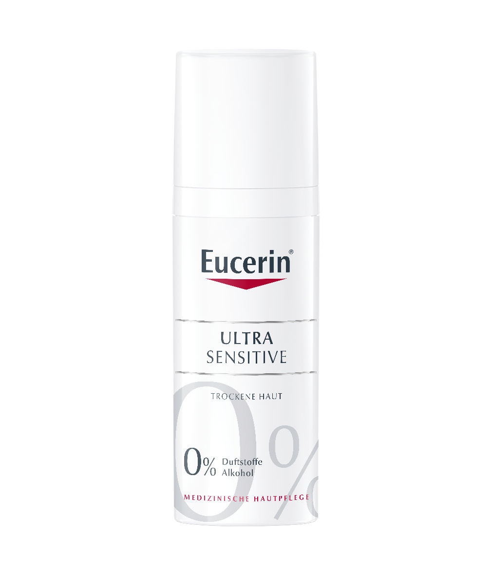 Eucerin UltraSENSITIVE Beruhigende Pflege für Trockene Haut wird für sehr empfindliche Haut empfohlen, deren Hauptsymptom ein unangenehmes Hautgefühl wie Brennen, Stechen oder Juckreiz ist – jedoch ohne sichtbare Anzeichen von Rötungen.